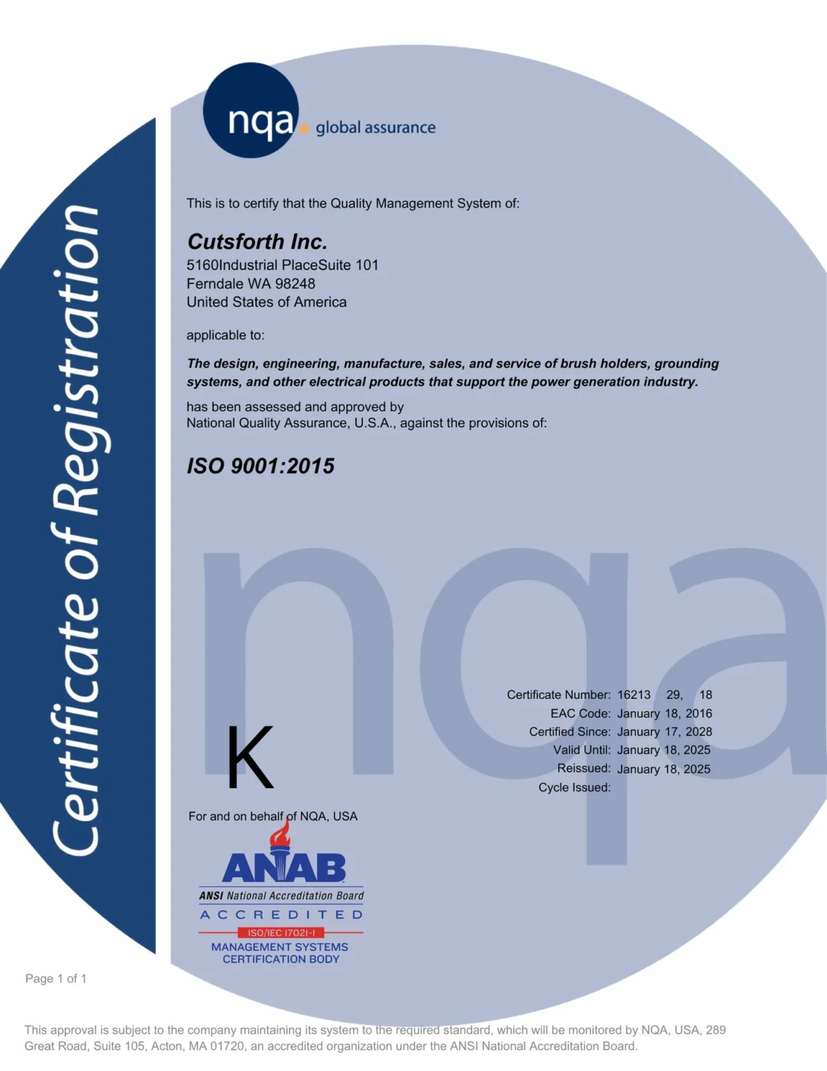 Cutsforth is dedicated to delivering reliable, high-quality products that meet global regulatory and industry standards. Our processes, hardware, and documentation are designed to support safe operation, consistent performance, and customer confidence.