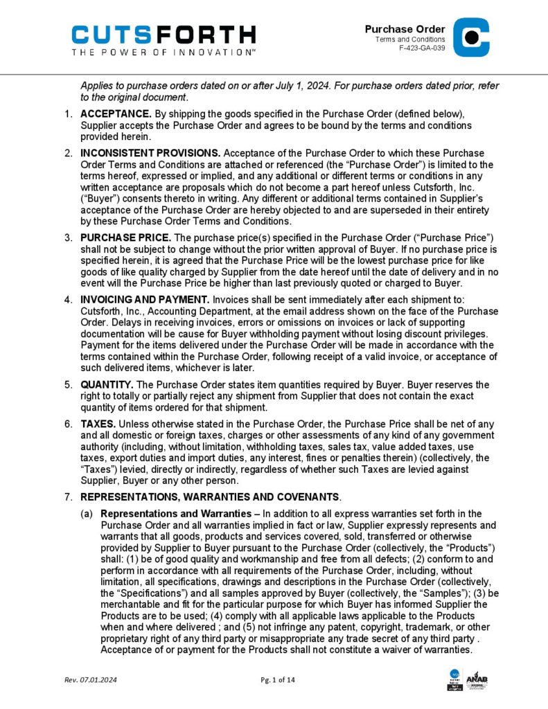 Purchase Order Terms and Conditions July 2024